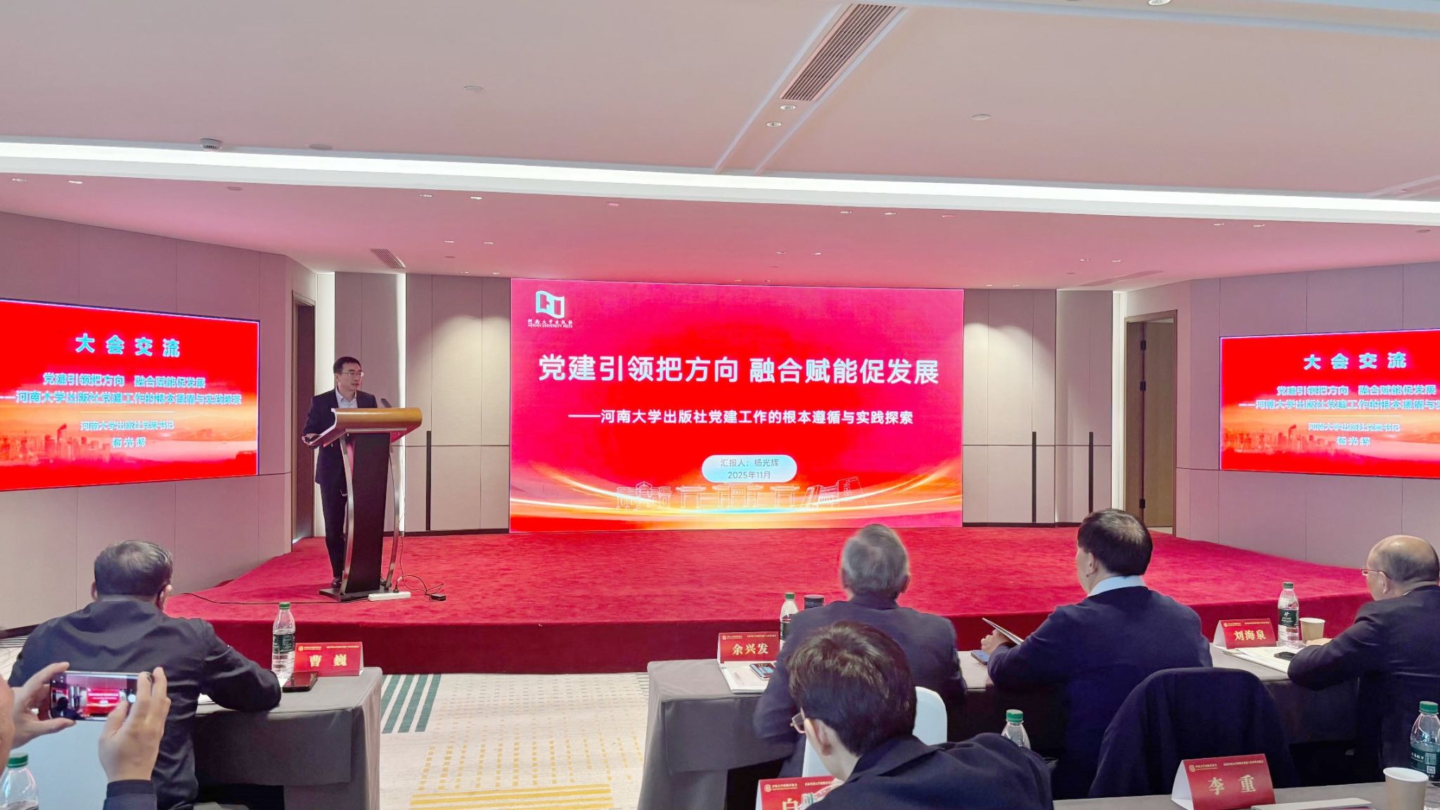 为深入学习贯彻习近平总书记关于党的建设的重要思想和党的二十届四中全会精神,11月11-12日,由中国大学出版社协会主办,中国矿业大学出版社承办的首届全国大学出版社党建工作经验交流会在江苏徐州举行。中国大学出版社协会、全国性行业协会商会、江苏省出版协会、中国矿业大学有关领导出席会议并致辞。全国40余家大学出版社党委书记、副书记、党委委员及相关党务工作人员参加会议。河南大学出版社党委书记杨光辉受邀在大会交流阶段作了“党建引领把方向,融合赋能促发展”主题报告。