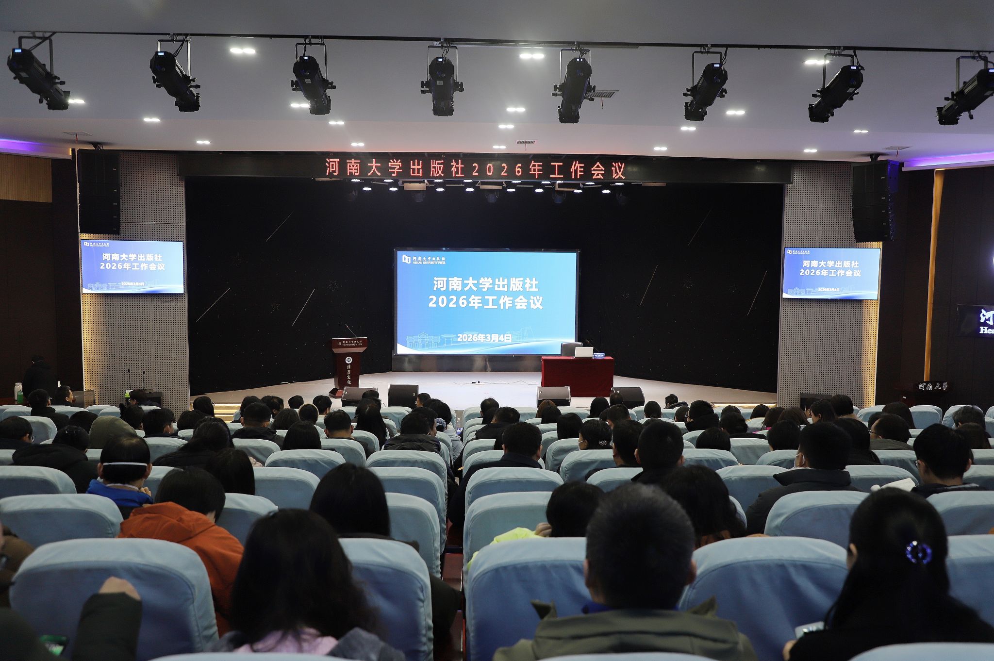 策马扬鞭开新局,奋楫笃行启新程。3月4日,河南大学出版社召开2026年度重点工作部署会,对2025年工作成效进行了全面总结,重点安排部署了2026年度任务目标,为扎实推进“十五五”规划开好局起好步。出版社领导班子、全体职工参加会议,会议由党委书记杨光辉主持。