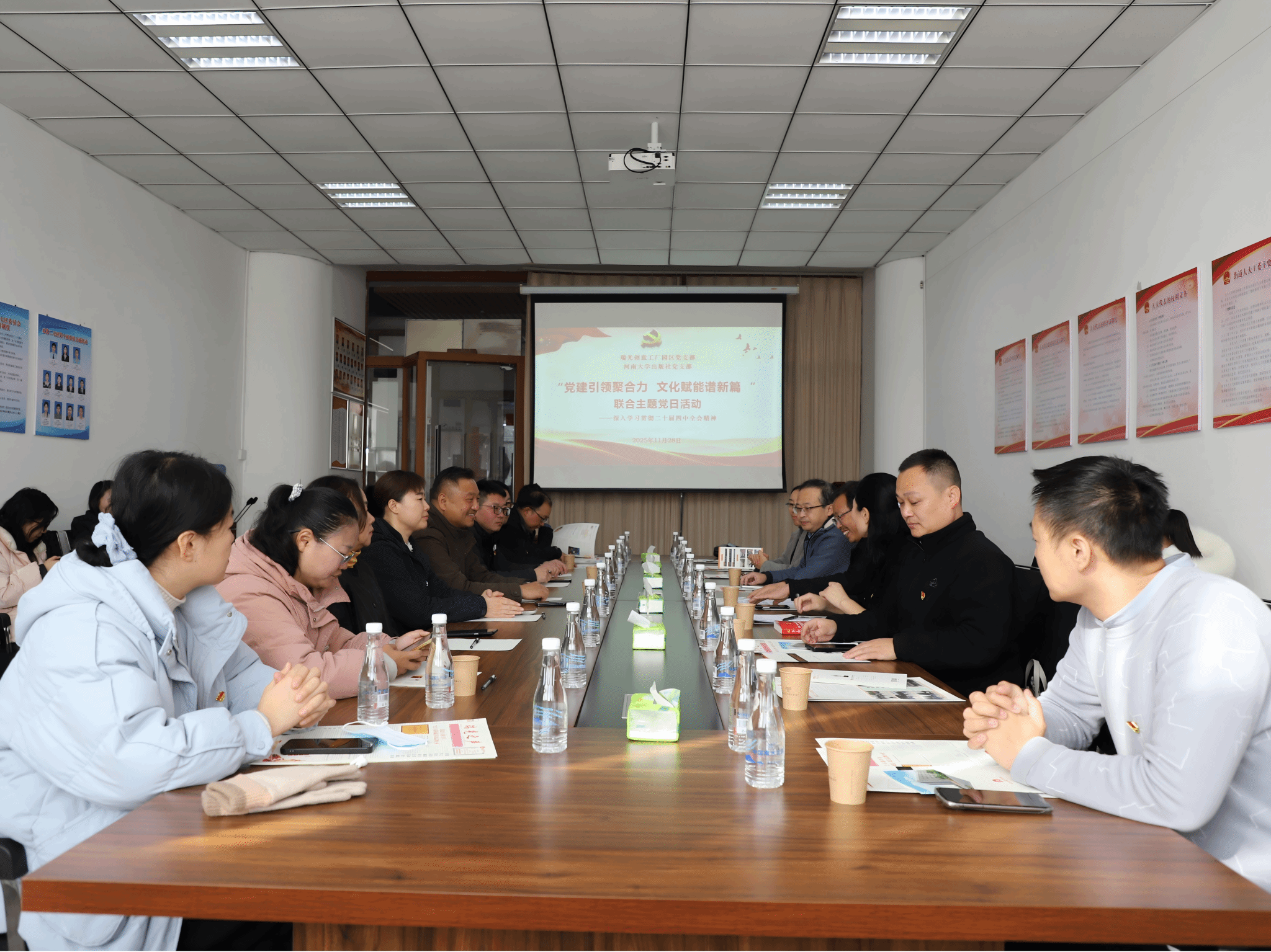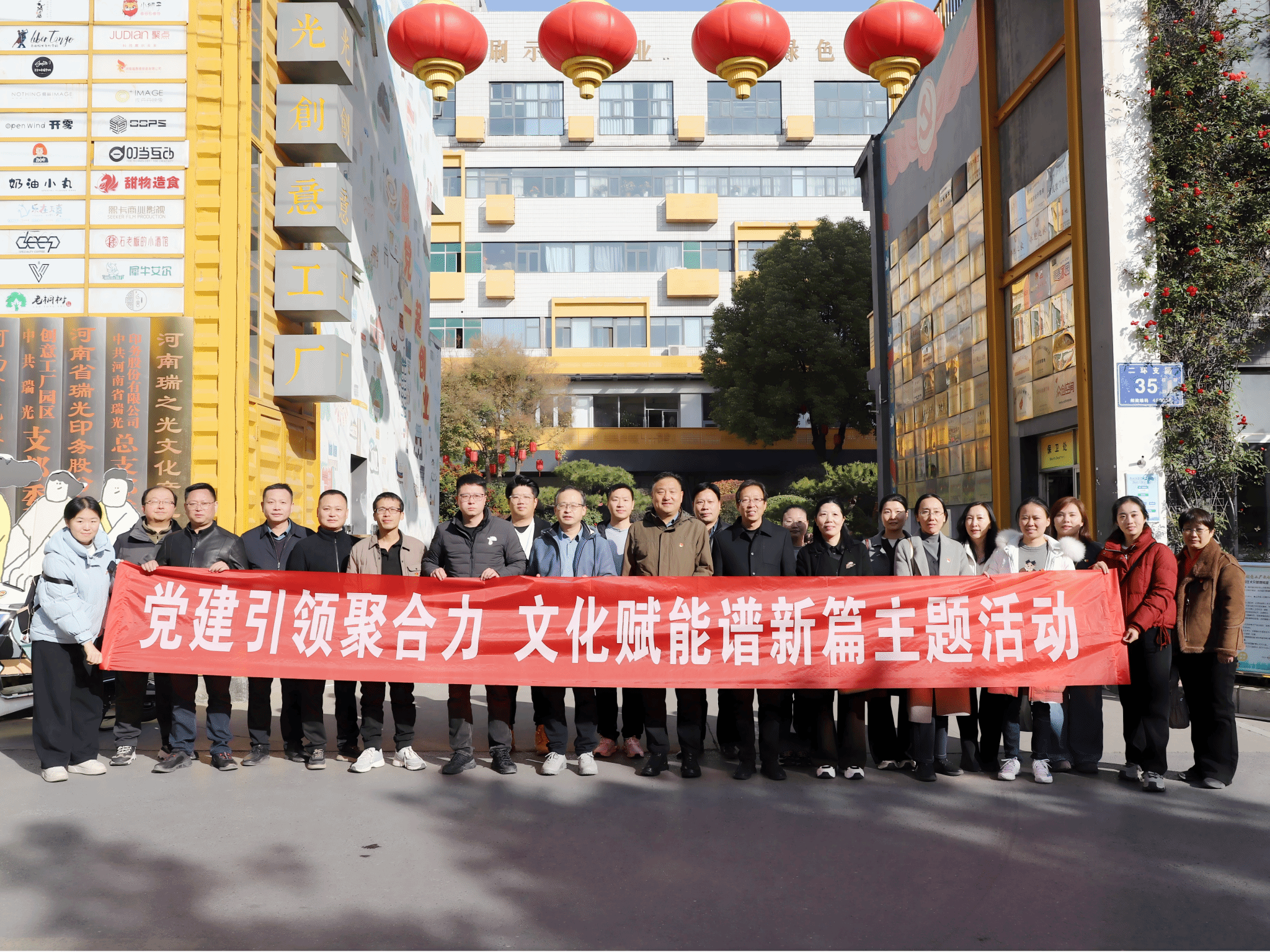 为深入学习贯彻党的二十届四中全会精神,进一步增强党员传承中华优秀传统文化、推进文化创新的自觉性,坚定文化自信自强,共同推动文化繁荣发展,11月28日,河南大学出版社党委副书记龙玉明、副总编陈林涛带领第二、第三党支部成员一行21人,赴瑞光创意工厂开展“党建引领聚合力,文化赋能谱新篇”支部联建活动。此次活动以党的二十届四中全会精神为指引,聚焦文化创新与产业协同,旨在通过党建引领促进资源整合,激发创新创造活力,推动双方在转型发展中实现合作共赢。