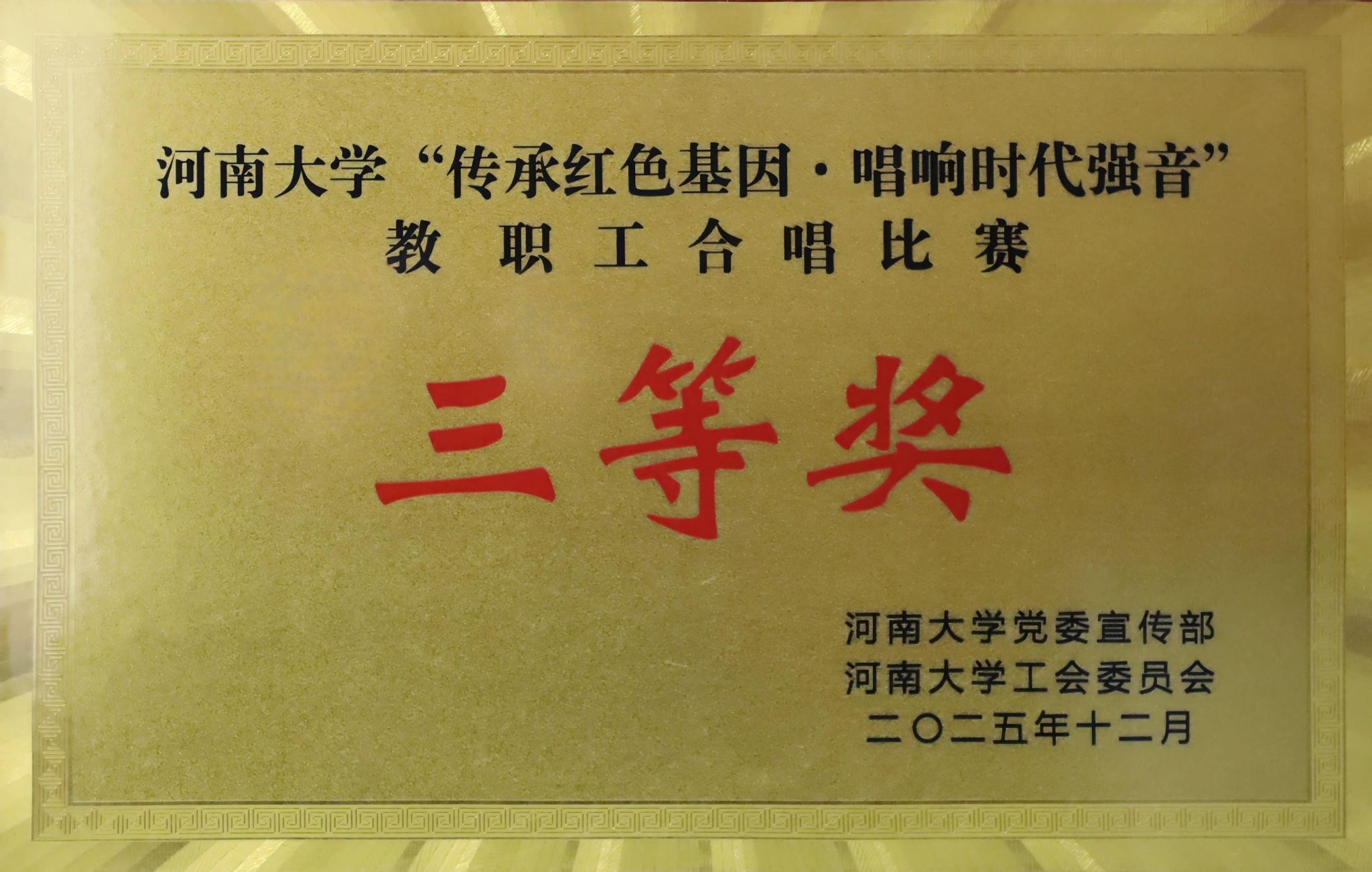 12月6日,在河南大学党委宣传部、校工会和音乐学院联合举办的“铭记历史 强国有我 筑梦未来——河南大学‘传承红色基因·唱响时代强音’教职工合唱比赛”中,出版社代表队凭借一曲激昂澎湃的《保卫黄河》,从众多参赛队伍中脱颖而出,以出色的表现荣获三等奖第一名,展现了河大出版人团结奋进、昂扬向上的精神风貌。