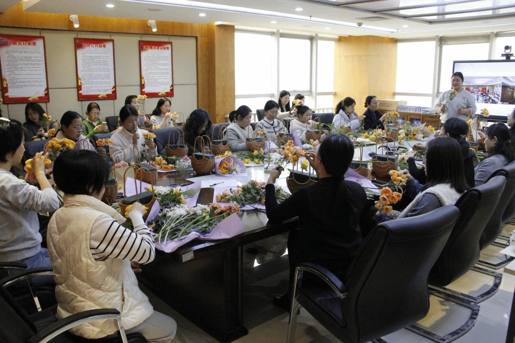 活动伊始,花艺老师首先为大家讲解了色彩搭配、花材选择、构图技巧等花艺设计相关知识。在实际创作环节,大家一边仔细聆听花艺老师的指导,一边发挥自己的创意和想象力,将一朵朵鲜花、一片片绿叶巧妙地搭配在一起。创作过程中,大家相互交流、彼此帮助,现场一片欢声笑语。经过一个多小时的创作,一束束形态各异、独具匠心的花艺作品新鲜出炉。女员工们手捧着自己的作品,脸上洋溢着满足和自豪的笑容。